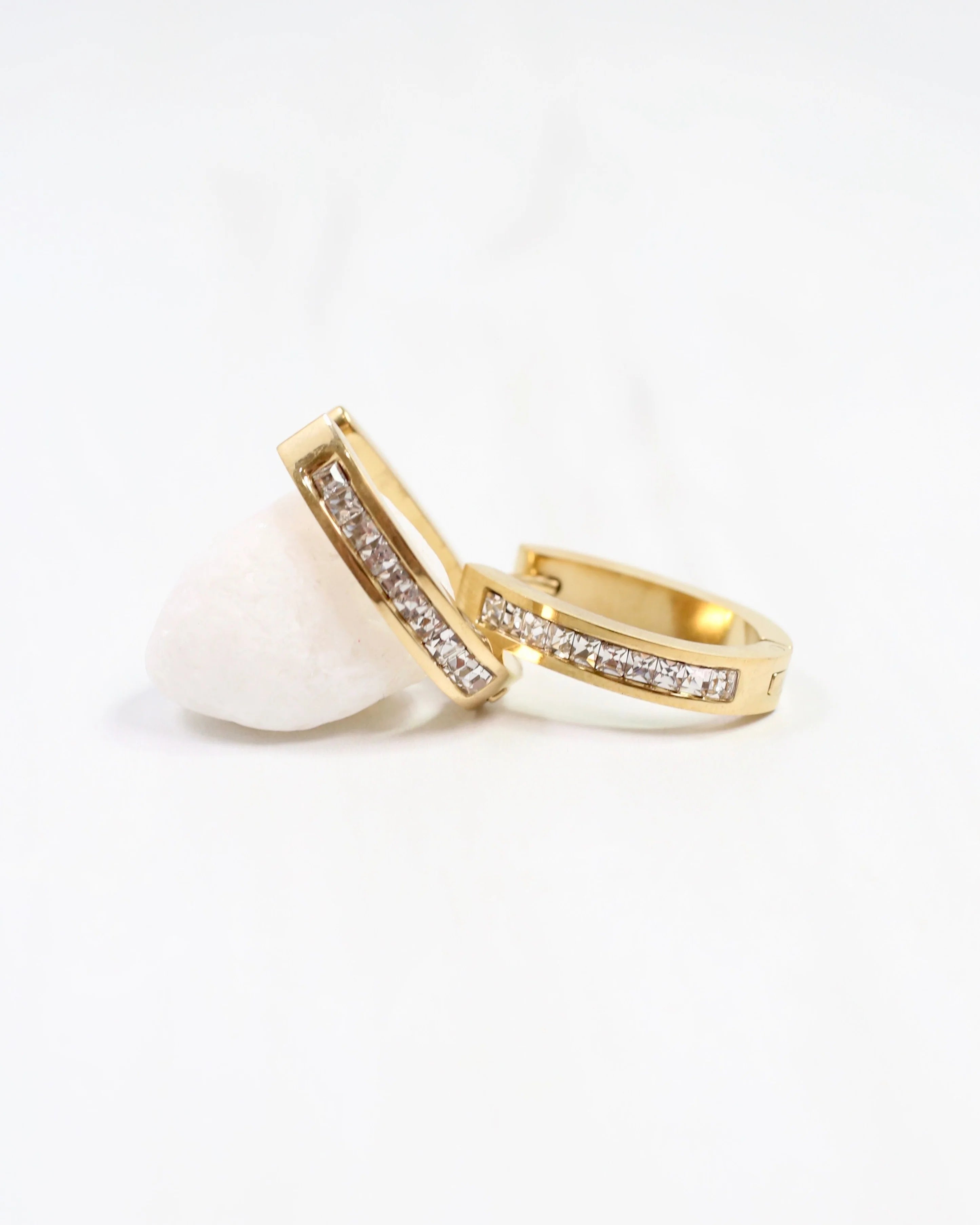 Elevate your everyday style with the Englewood CZ Hoop Earring in Gold. These elegant gold hinged oval hoops feature a sparkling line of cubic zirconia down the center, adding a refined shimmer to any outfit. Designed for comfort and versatility, they transition effortlessly from day to night, making them a chic staple for your accessory collection.