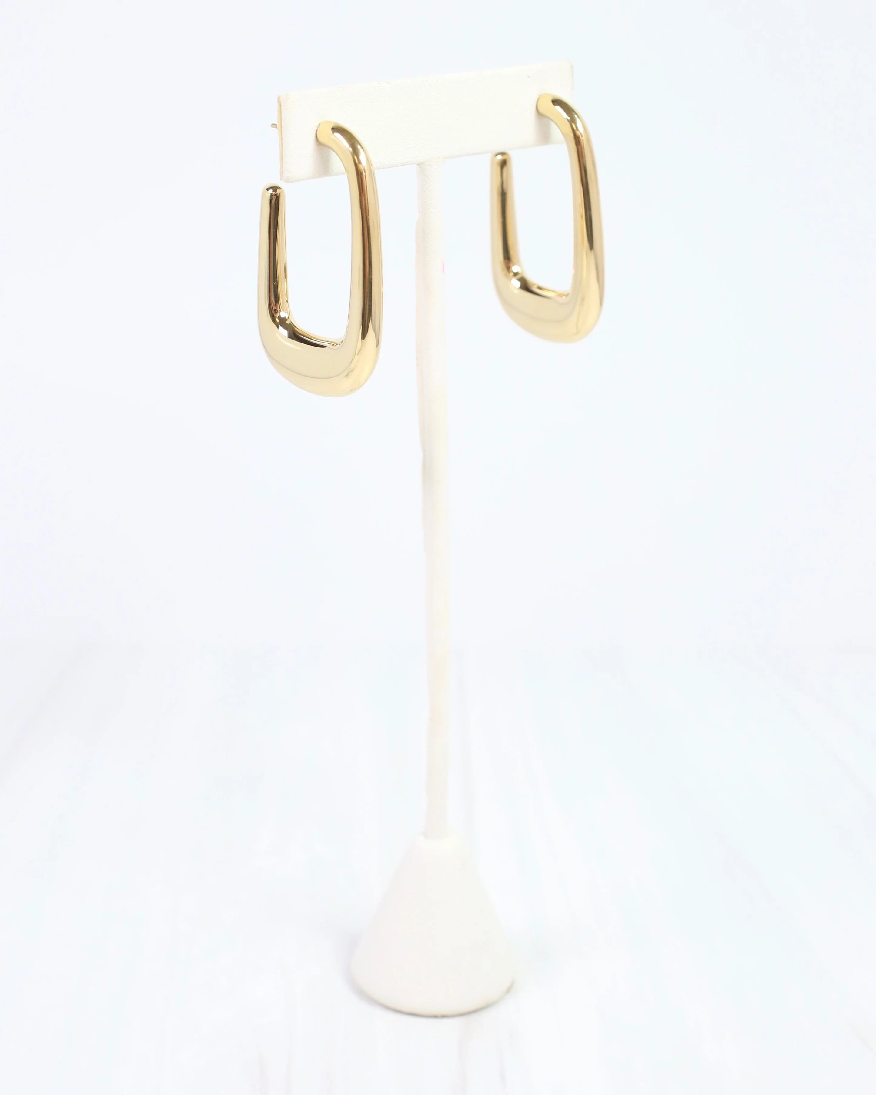 The Glenwood Hoop Earring in Gold features a shiny, open square design that offers a classy and stylish look. Its polished gold finish adds a modern touch, making it an ideal accessory to enhance any fashionable outfit.