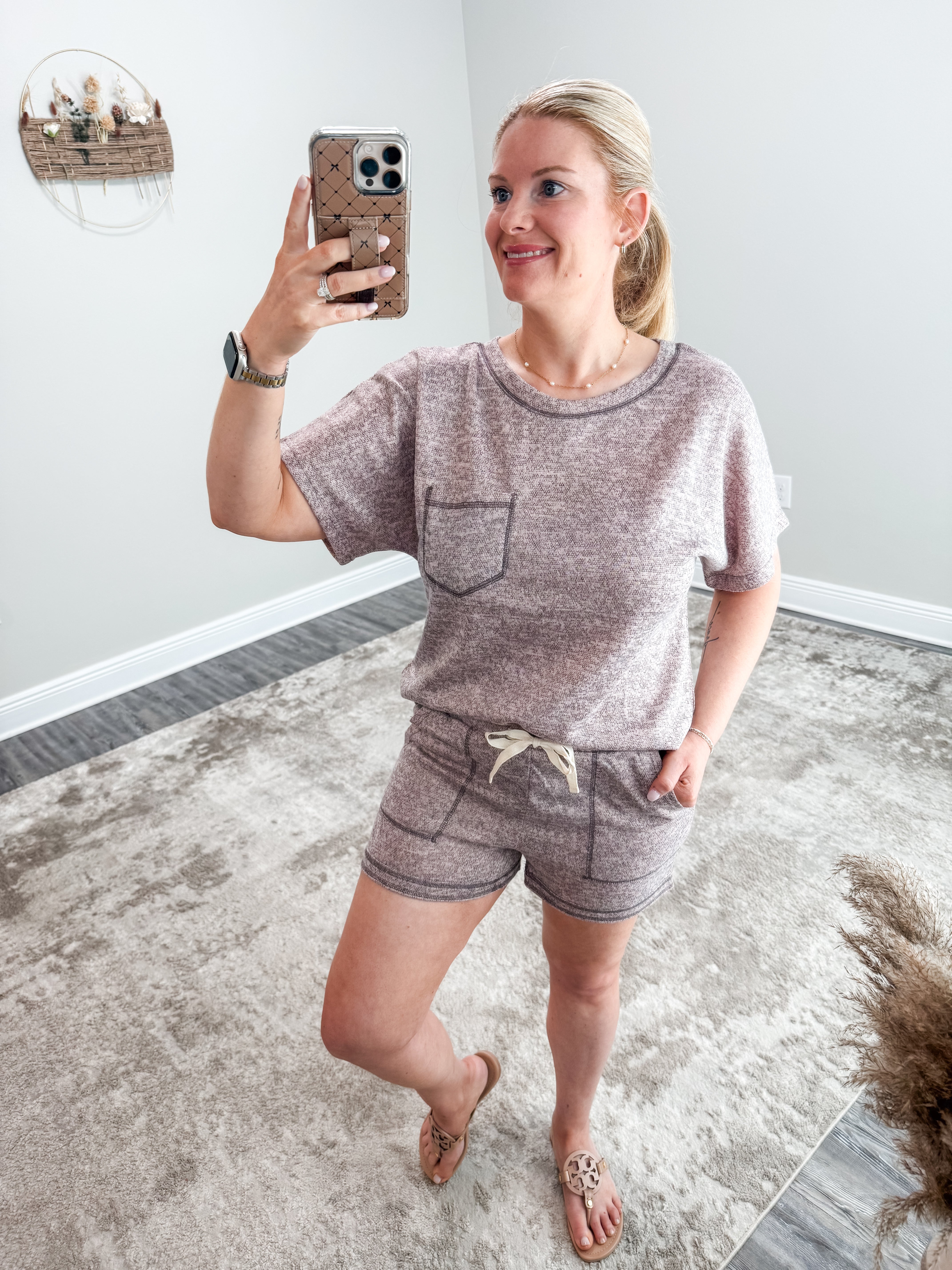Experience stylish comfort with our Blush Contrast Stitch Set. Made from heathered knit fabric, this set features a contrast stitch detail and chest pocket on the top, while the shorts come with pockets, drawstrings, and an elastic waist for added convenience. With a loose fit and round neck, this basic t-shirt set is perfect for any casual occasion. Add a touch of style with the contrast stitching detail along the hem.