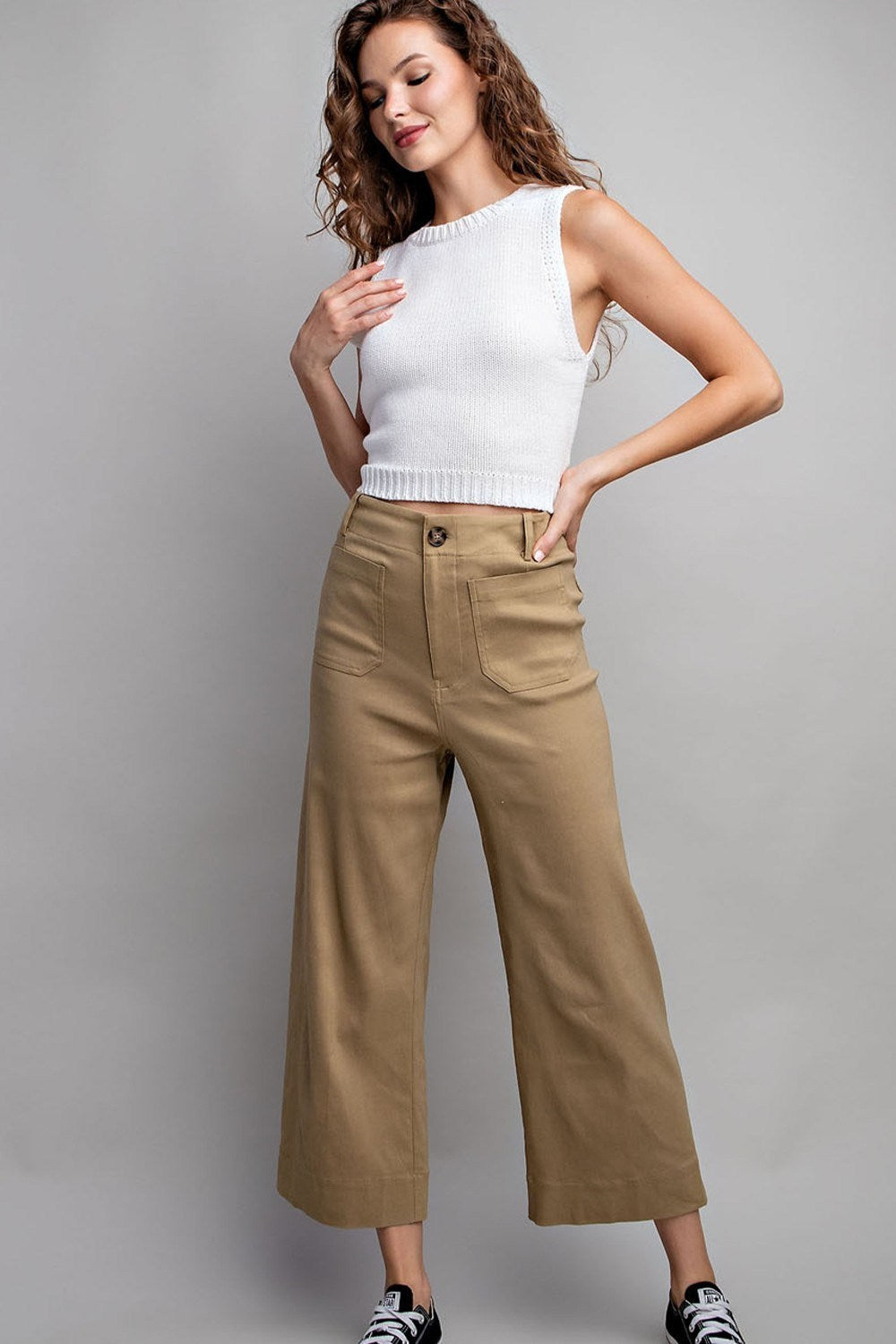 Soft washed wide leg pants with button closure and two front pockets. Can also be worn with a belt. Pair with your favorite top and booties!