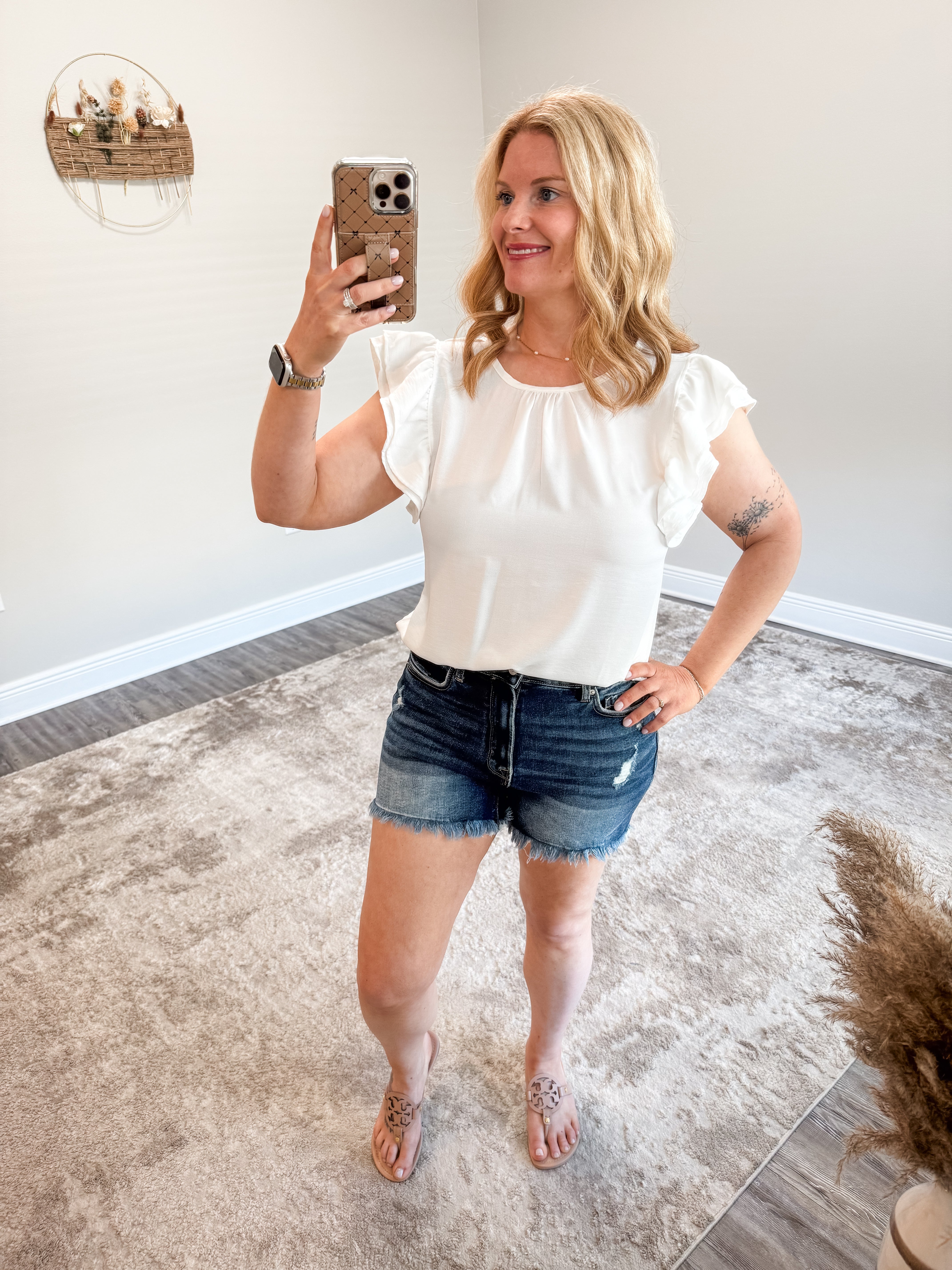 Effortlessly stylish, these Dark Washed Jean Shorts boast a frayed seam for added edge. With a 3 inch inseam, they offer a comfortable and flattering fit. Perfect for any casual occasion, these shorts are a must-have staple for any wardrobe.