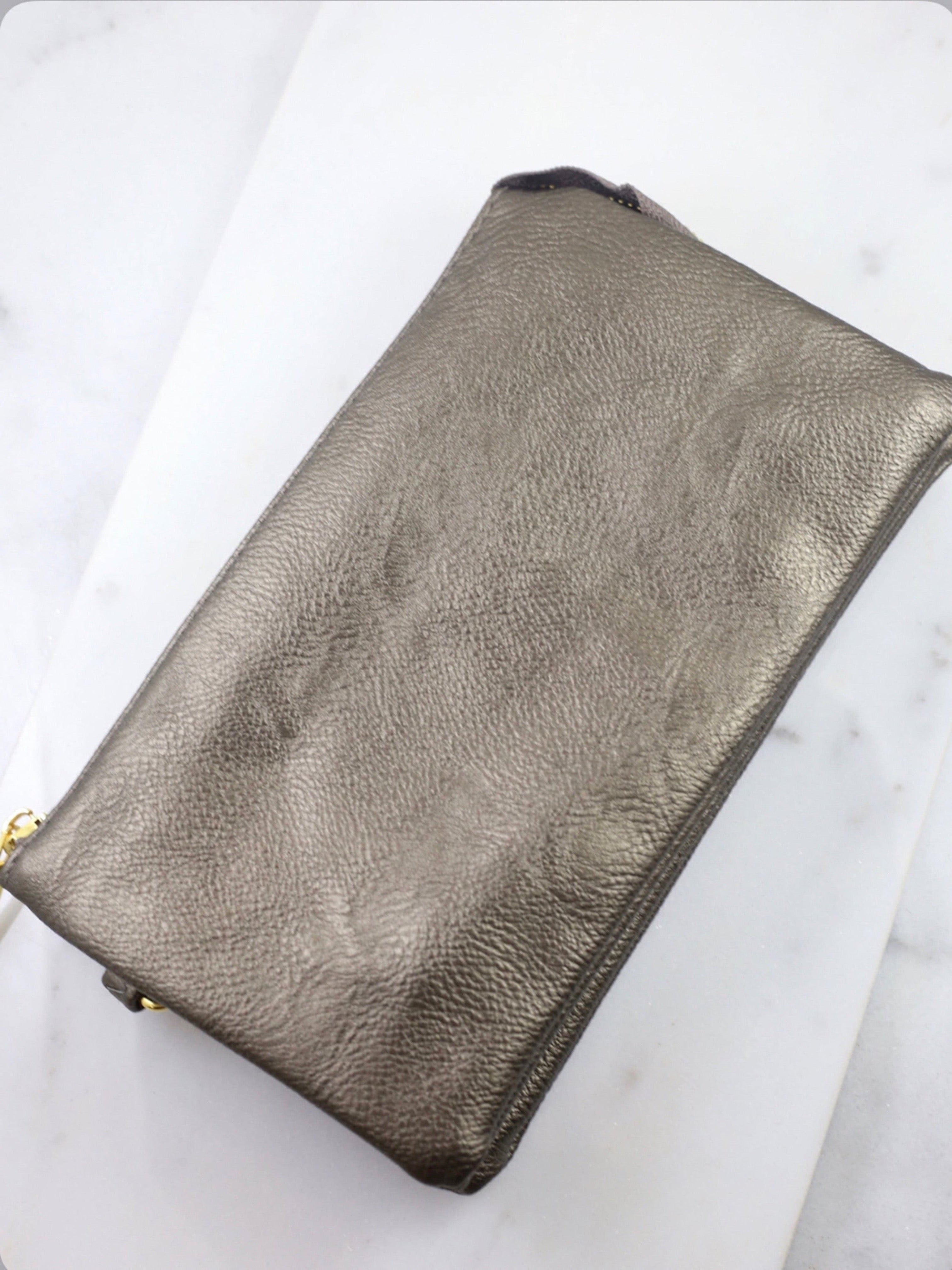 Crossbody Purse/Wristlet (Metallic Pewter)