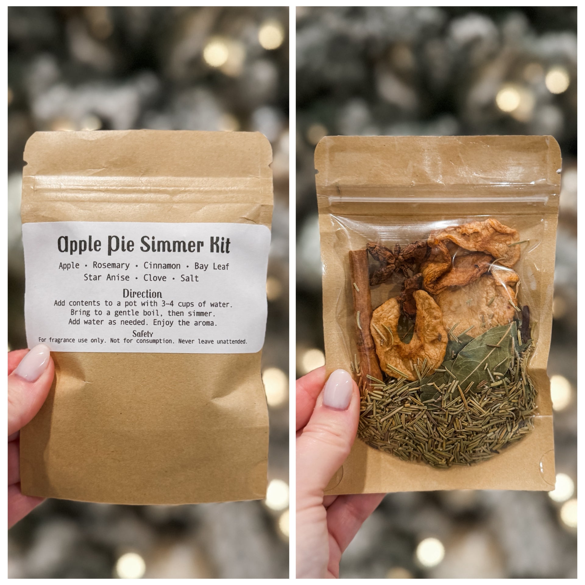 Bring the warmth of the season into every room with this enchanting Apple Pie Simmer Kit. Blend the carefully curated mix of apple, rosemary, cinnamon, bay leaf, star anise, clove, and salt with water, then gently heat to release a captivating holiday fragrance that evokes cherished memories and festive gatherings. As the aromatic steam rises, your home transforms into a sanctuary of seasonal comfort and joy. Simply add water as needed to keep the magic alive throughout your celebration. A delightful way to set the perfect holiday mood. For fragrance use only—do not consume or leave unattended.