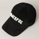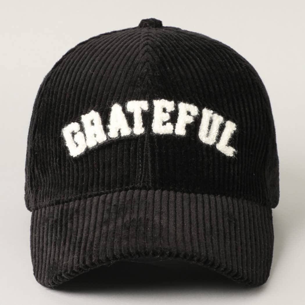 This Grateful Embroidered Corduroy Baseball Cap is designed with soft, velvety corduroy for a comfortable and stylish look. Featuring a 6-panel design and adjustable strap, this 100% cotton cap is perfect for any size. Stand out with the 3D embroidered "GRATEFUL" logo and feel grateful for this trendy hat!