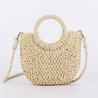 Semi-Circle Handmade Straw Bag-Beige