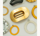 Unwind and relax with the new TELETIES Flat Round Hair Clip! Designed with our same innovative material that is nearly unbreakable, this clip is perfect for lying down, doing yoga or simply laying back without discomfort.