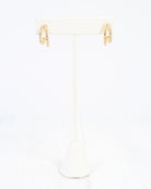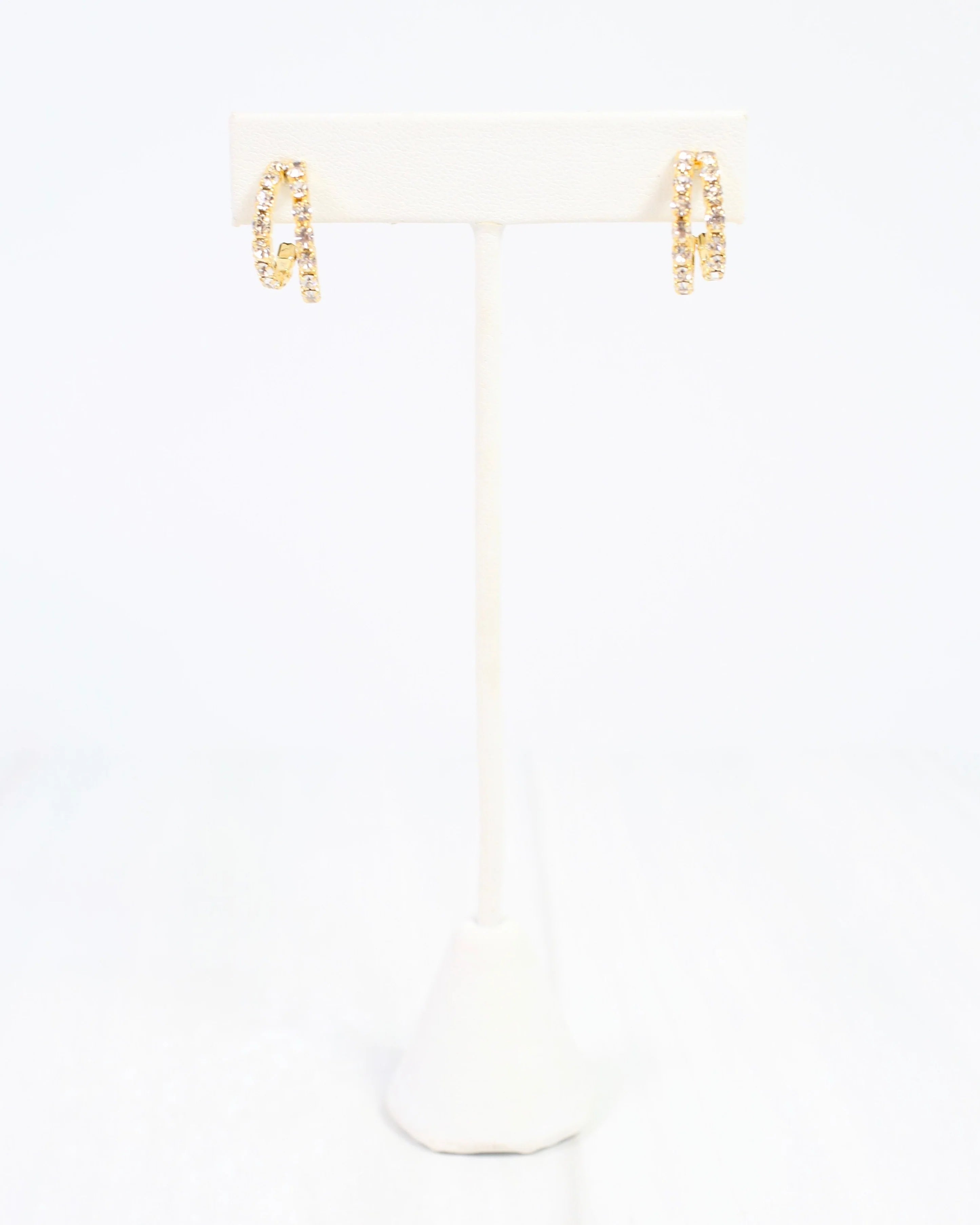 Elevate your style with the Crystal Rounded Double Hoop in Gold. Featuring two intertwined hoops adorned with shimmering cubic zirconia, these earrings catch the light beautifully for a sparkling, polished look. Perfect for adding a touch of glamour to any outfit, they combine timeless elegance with modern shine.