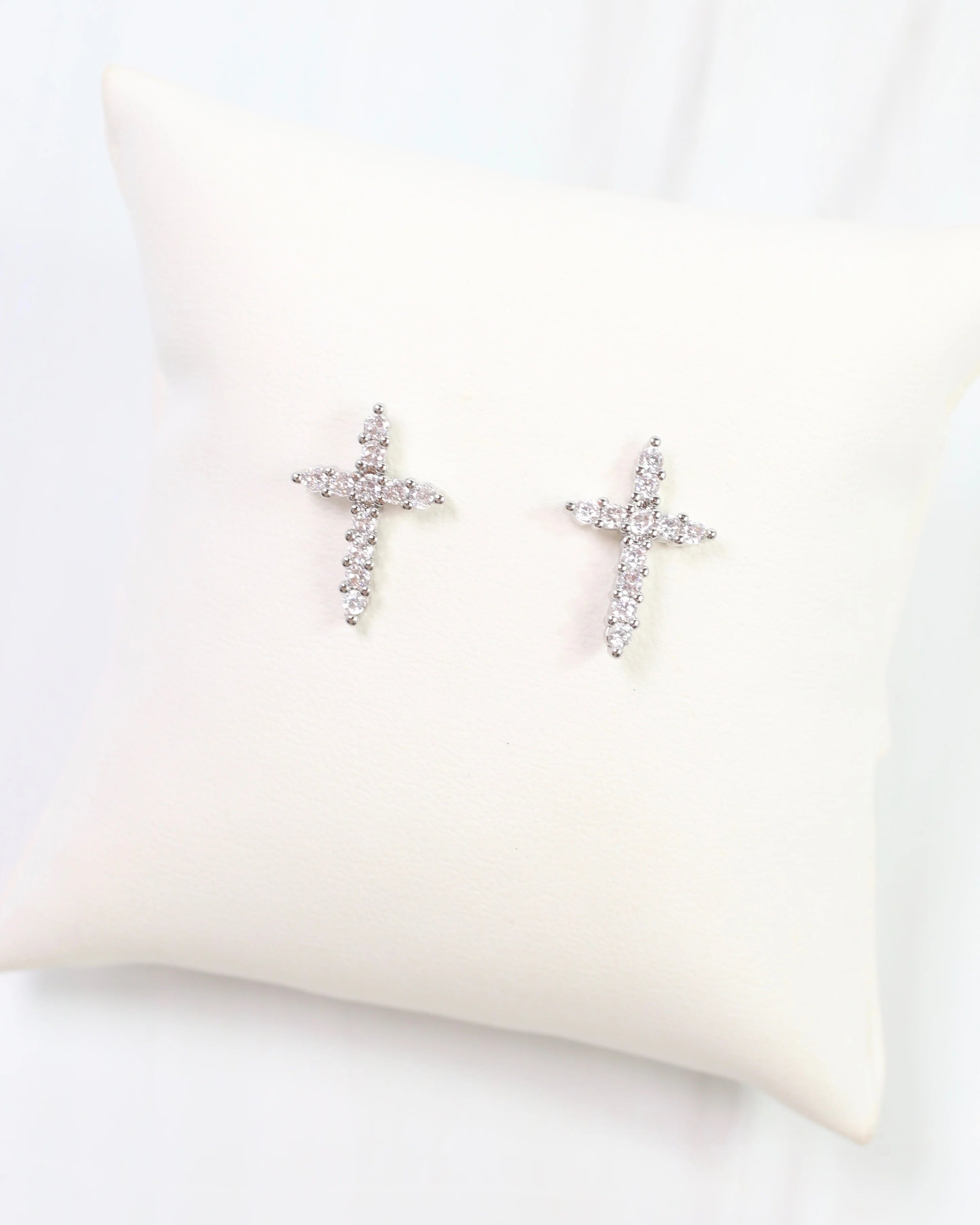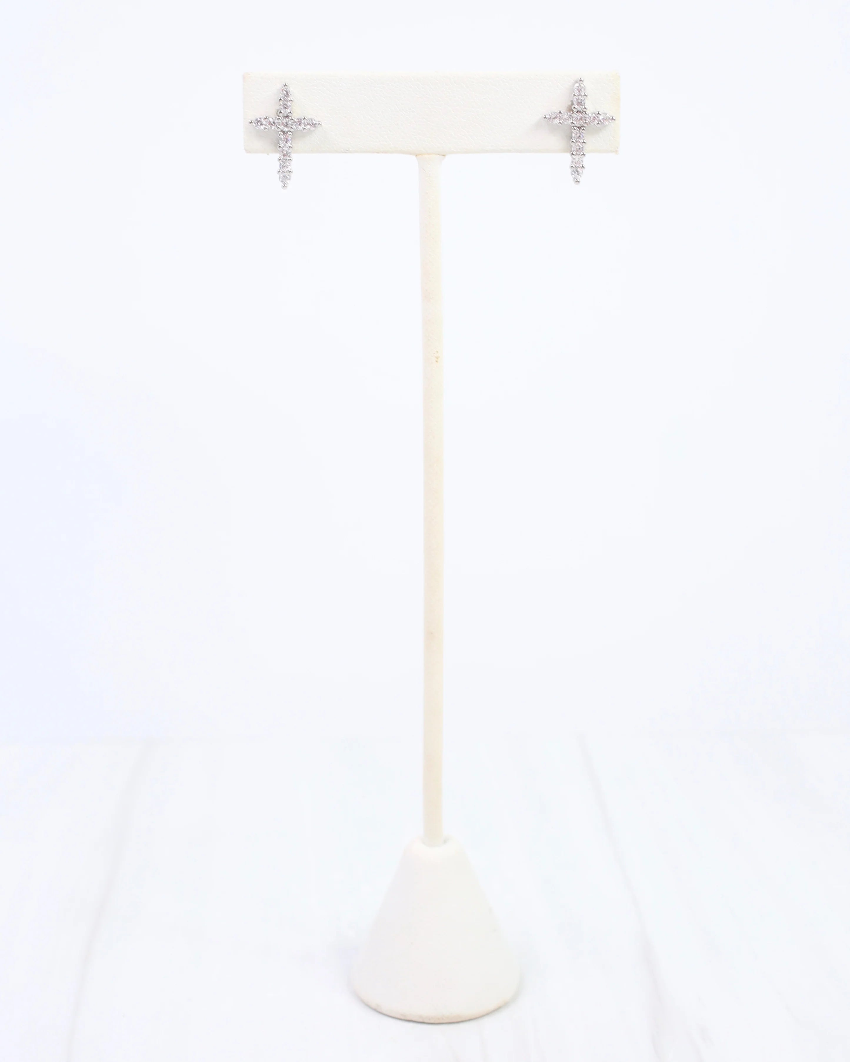 Elevate your everyday style with the Florence CZ Cross Earring in Silver. This finely crafted pave cross stud adds a subtle sparkle, making it the perfect accessory for daily wear. Its sleek design effortlessly complements any outfit, blending timeless elegance with modern fashion.