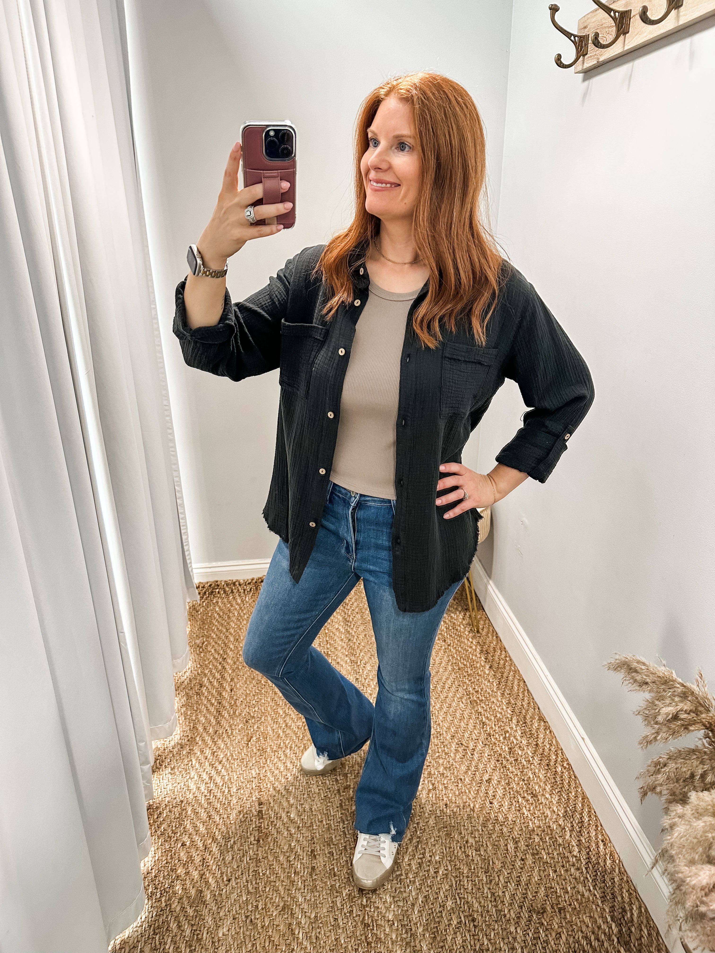 This Longsleeve Gauze Button-Up shirt features a lightweight and breathable gauze weave, ideal for both warm and cooler climates. The long sleeve design ensures comfortable coverage and the button-up closure ensures a secure fit.