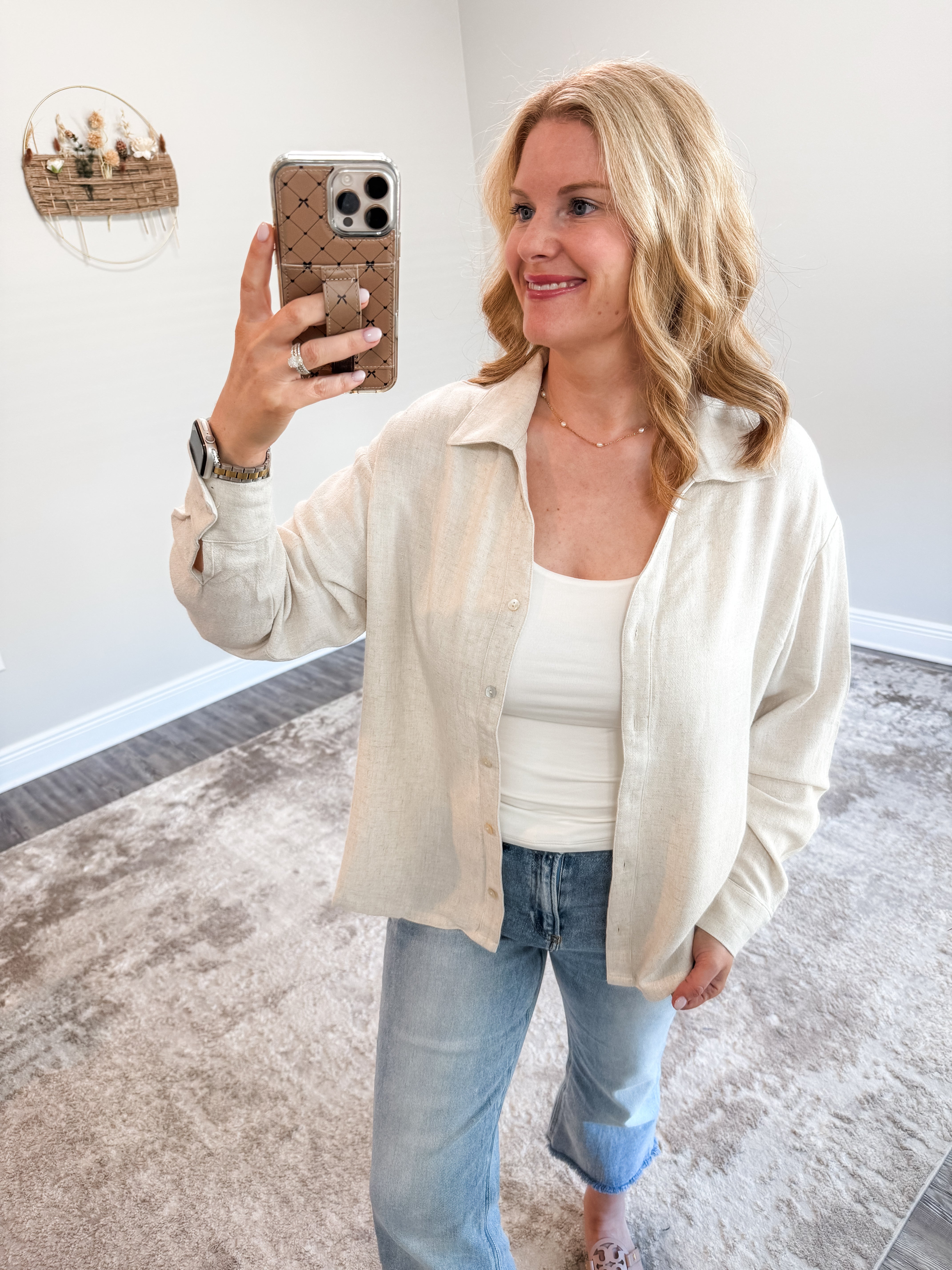 Introducing the Stella Linen Top - your new go-to staple piece! This solid, long sleeve top features a button-down front, collared neckline, and buttoned cuffs for a relaxed, loose fit. Dress it up or down, this versatile top is perfect for any season and any occasion. Elevate your wardrobe with the Stella Linen Top!