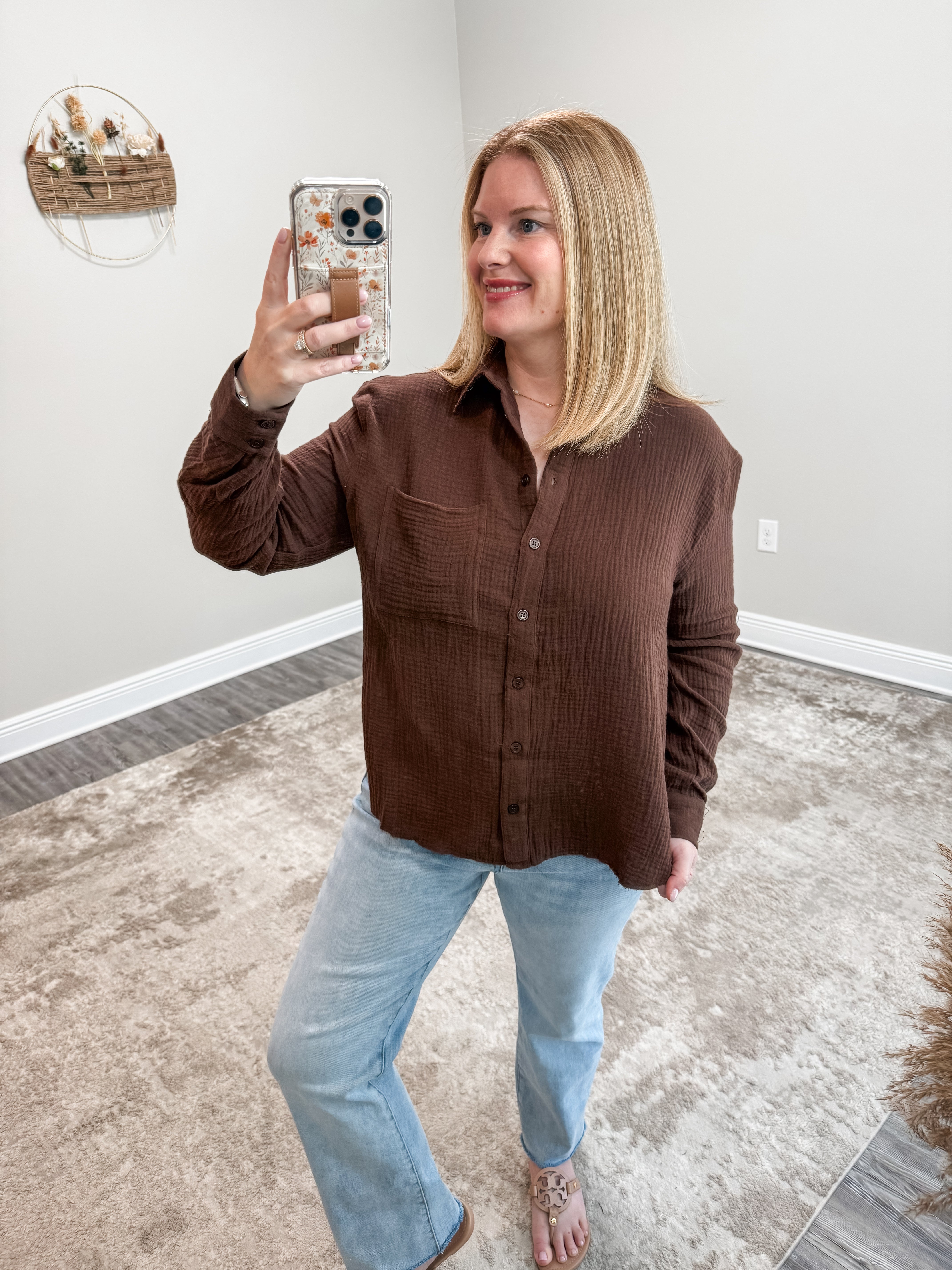 Experience comfort and style with the Kinsey Gauze Top, crafted from soft, breathable fabric that feels gentle on your skin. Its collared neck and button-up design with functional buttons offer a polished yet relaxed look, perfect for any occasion. The round hemline adds a modern touch, making this top a versatile addition to your wardrobe that effortlessly combines ease and elegance.