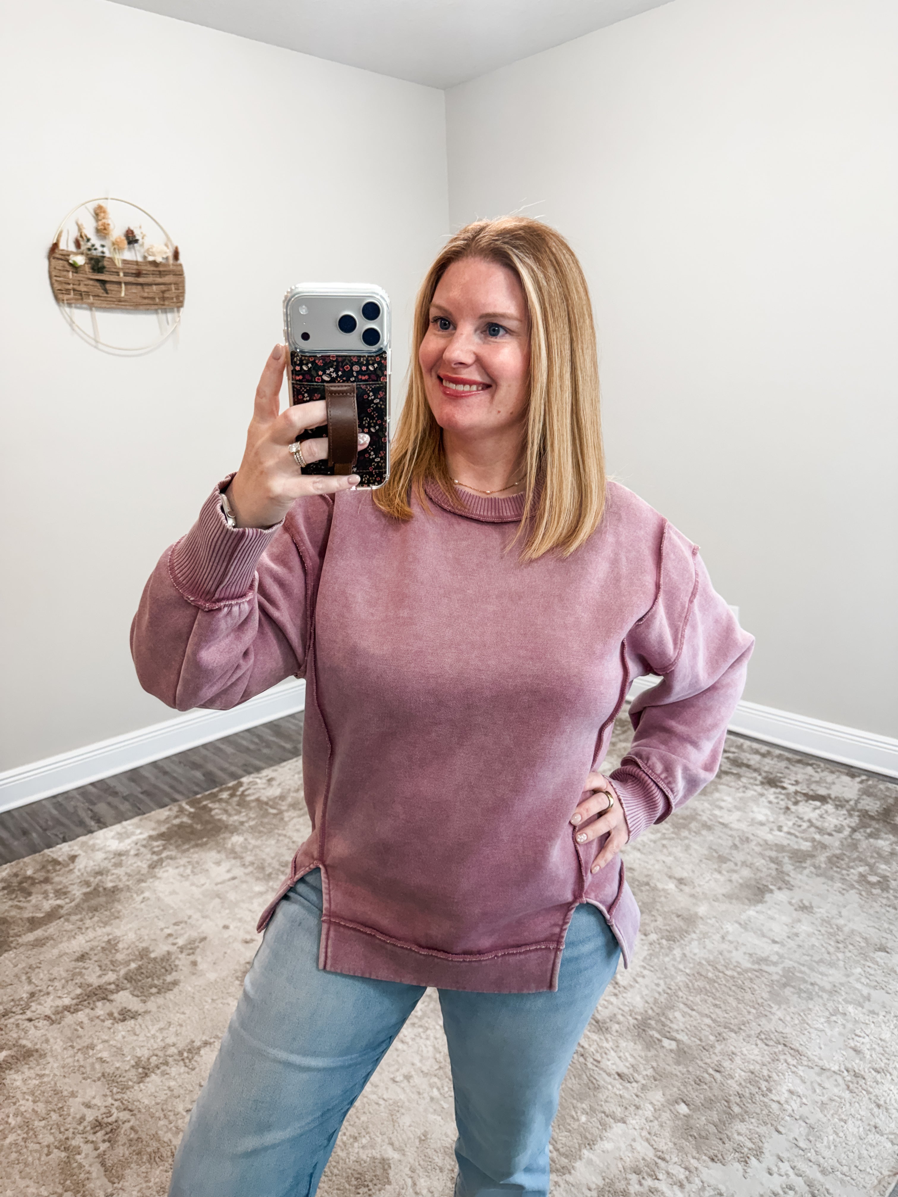 The Lakyn Top combines edgy style with everyday comfort. This acid-washed fleece sweatshirt features exposed-seam detailing for an intentional, fashion-forward look, while practical side slits add movement and versatility. The bottom band keeps everything in place without sacrificing that relaxed vibe. Perfect for layering or wearing solo, it's the effortless piece that elevates any casual outfit.
