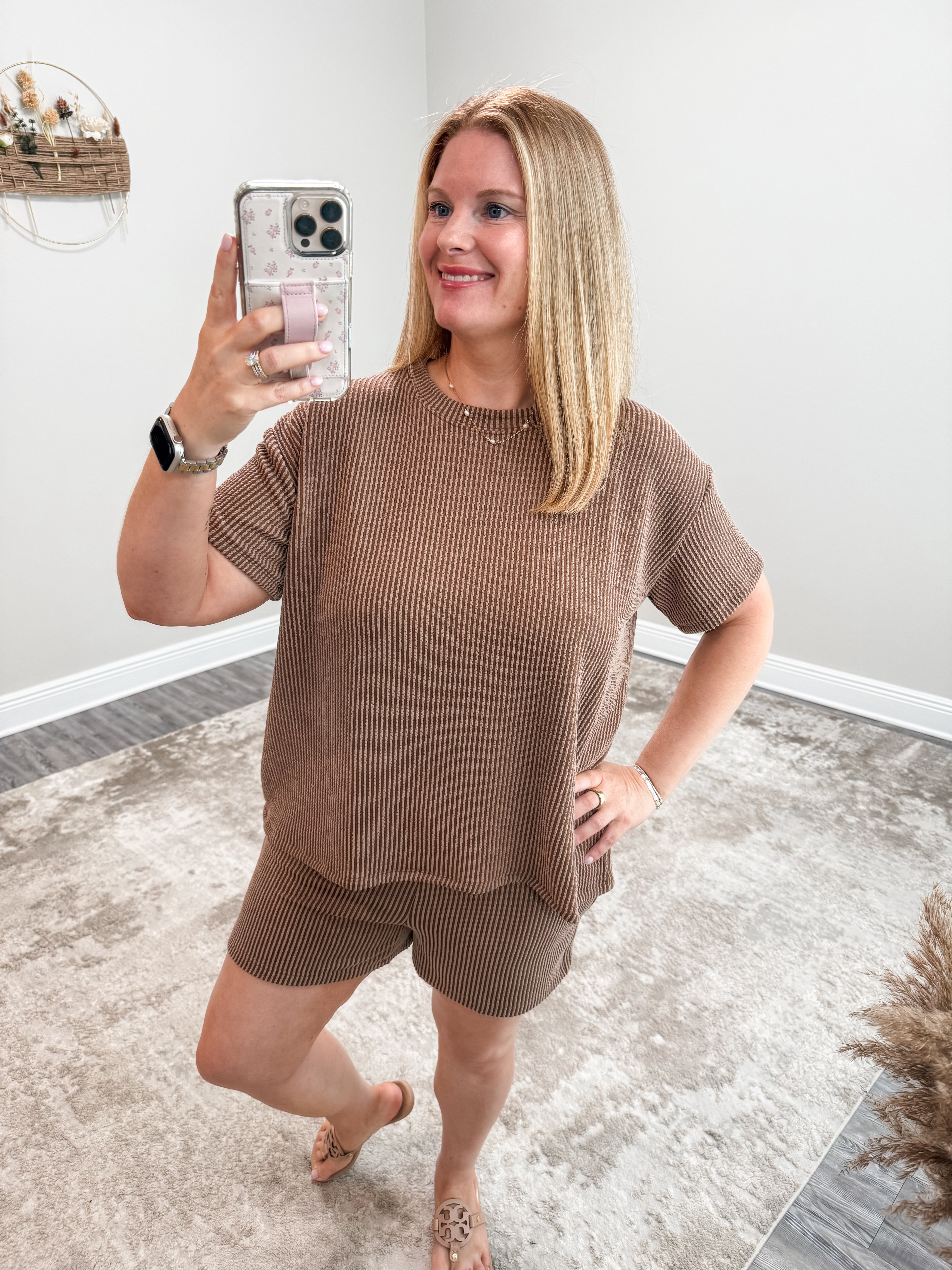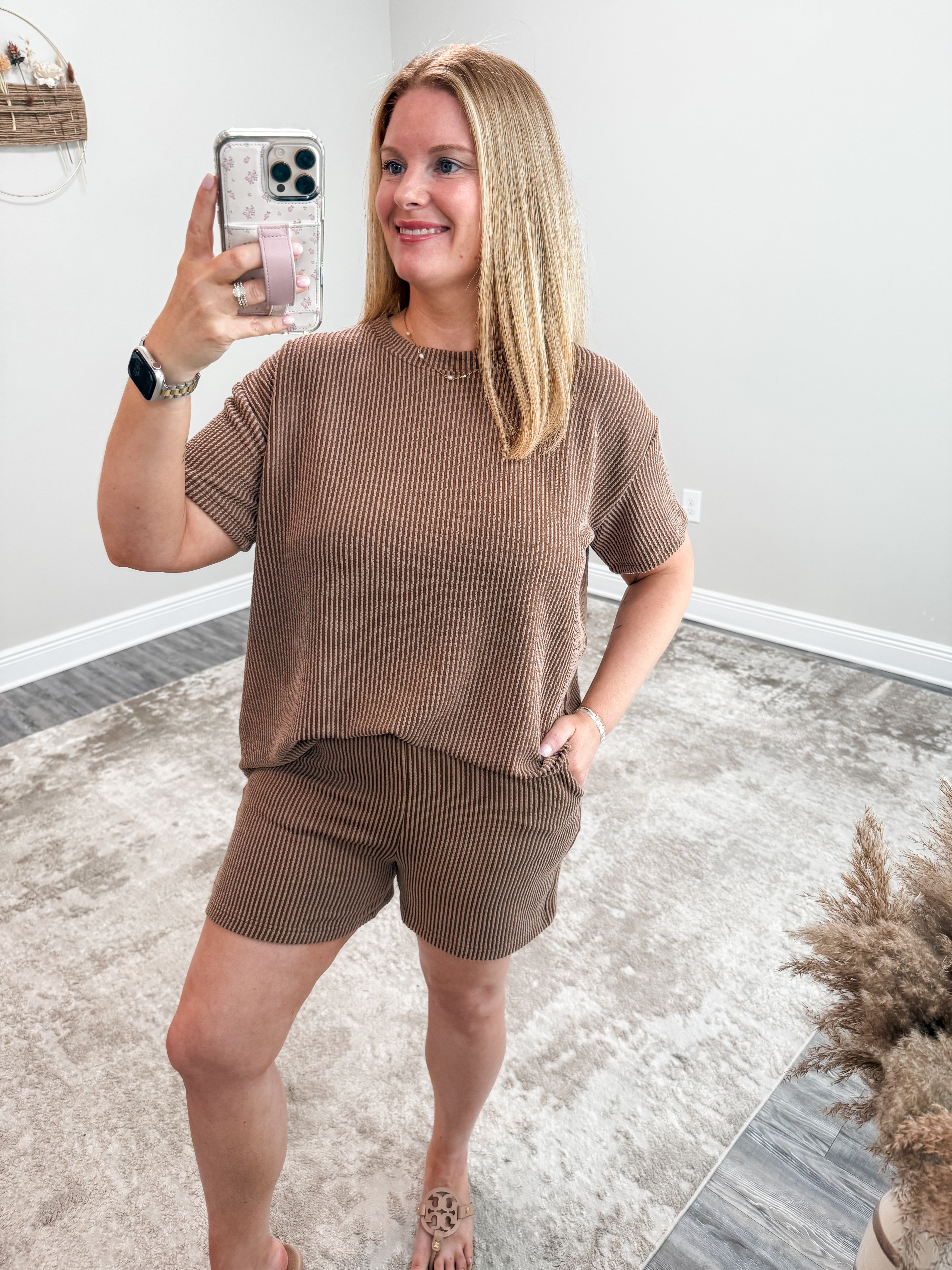 Experience ultimate comfort and style with the Maggie Ribbed Set. Made with soft corded rib material, this set includes a short sleeve tee and shorts with a pocket for added convenience. The round-neck tee adds a touch of elegance to this casual ensemble. Upgrade your loungewear game now!