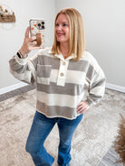 The Sydney Striped Top offers a fresh take on casual chic with its relaxed fit and drop shoulder design for effortless layering. Its classic collar and half-button placket feature functional buttons, allowing you to adjust your look with ease. The long sleeves and acid-washed, washed stripe pattern bring a vintage-inspired edge that elevates everyday style. Perfect for those seeking comfort without compromising on distinctive, laid-back fashion.