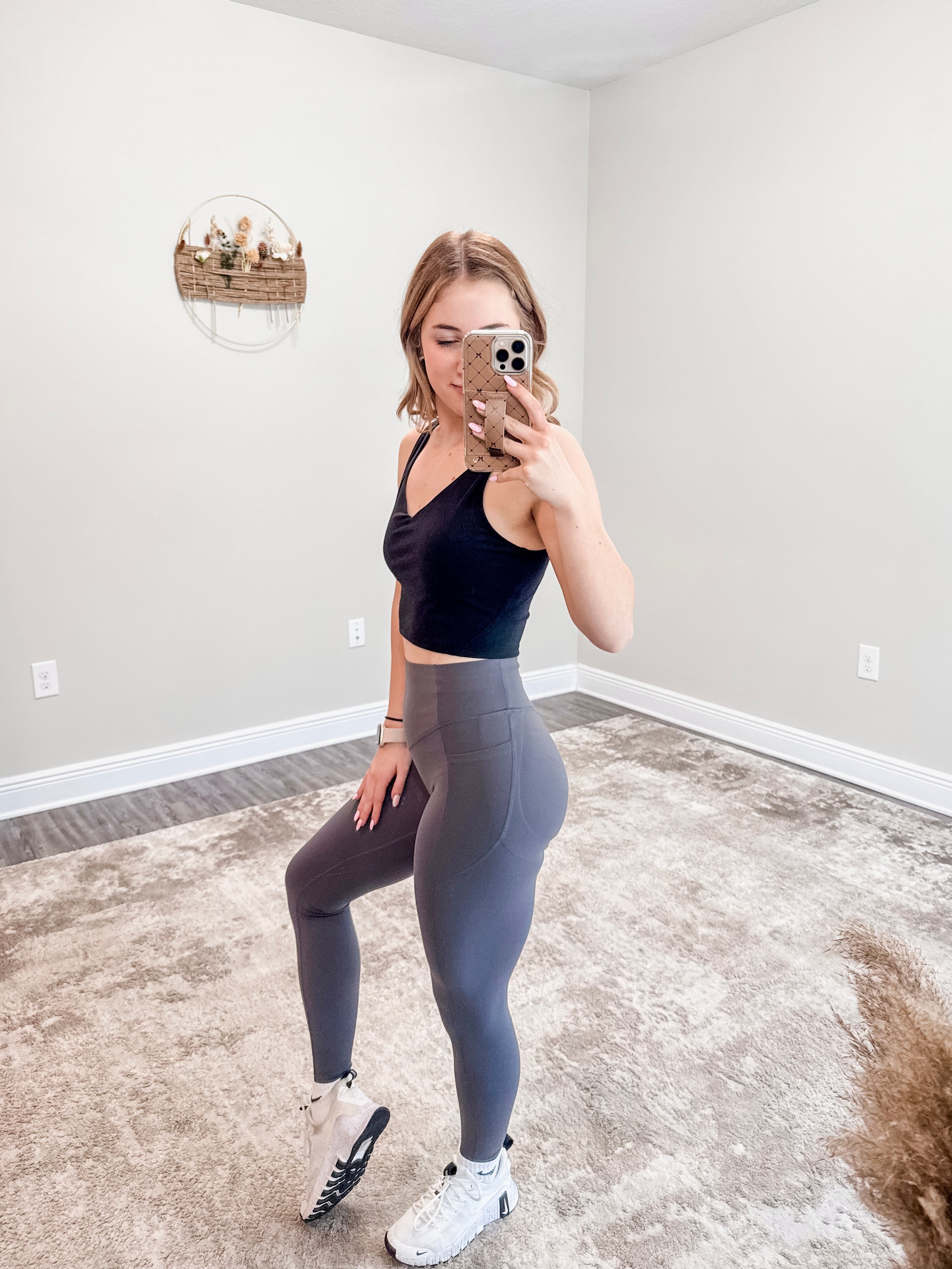Halara SoCinched High Waisted Butt Lifting Tummy Control Side Pocket Shaping Training UltraSculpt Leggings (Ash Grey)