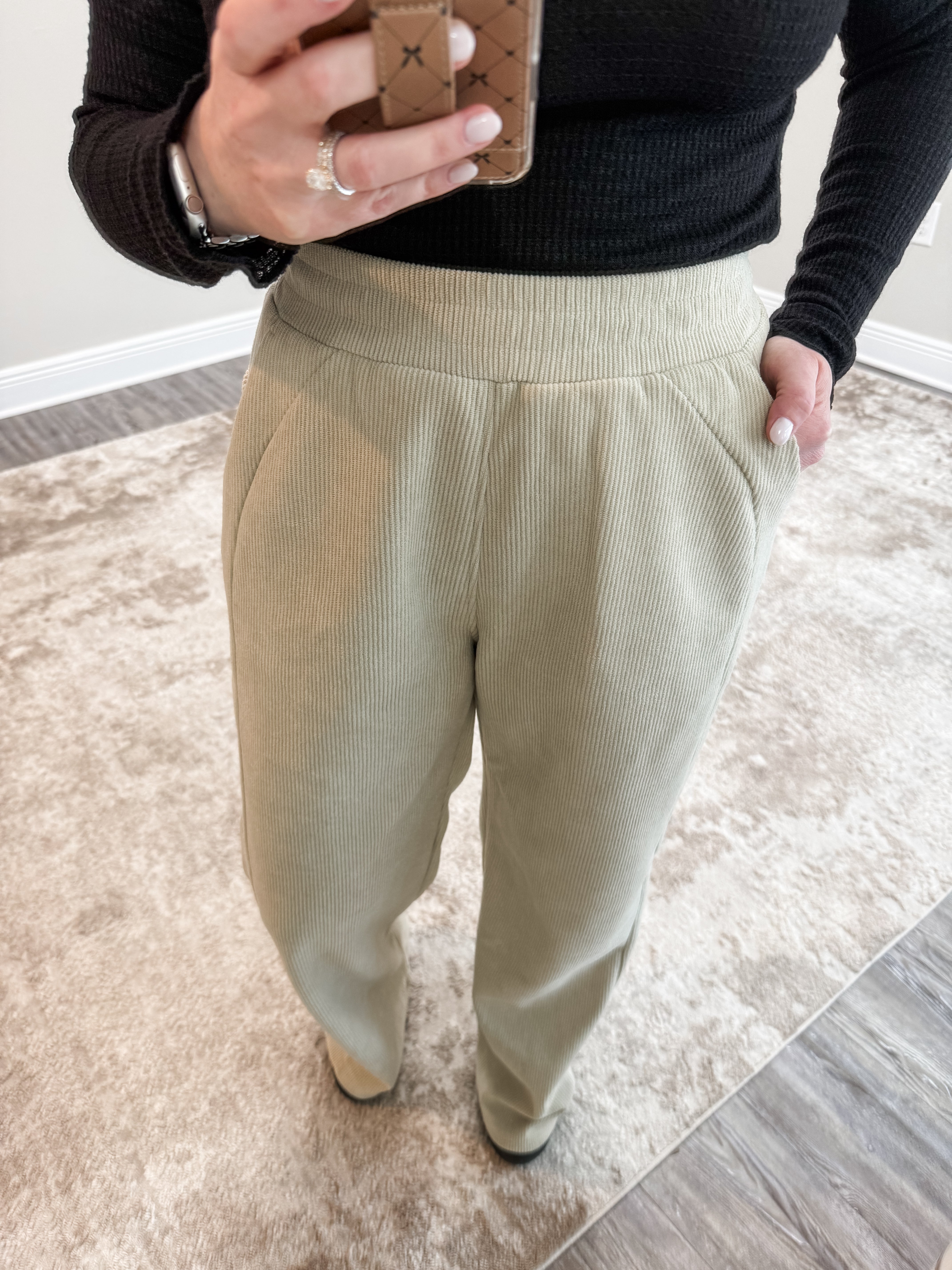 Halara High Waisted Side Pocket Straight Leg Corduroy Casual Pants (Almond)