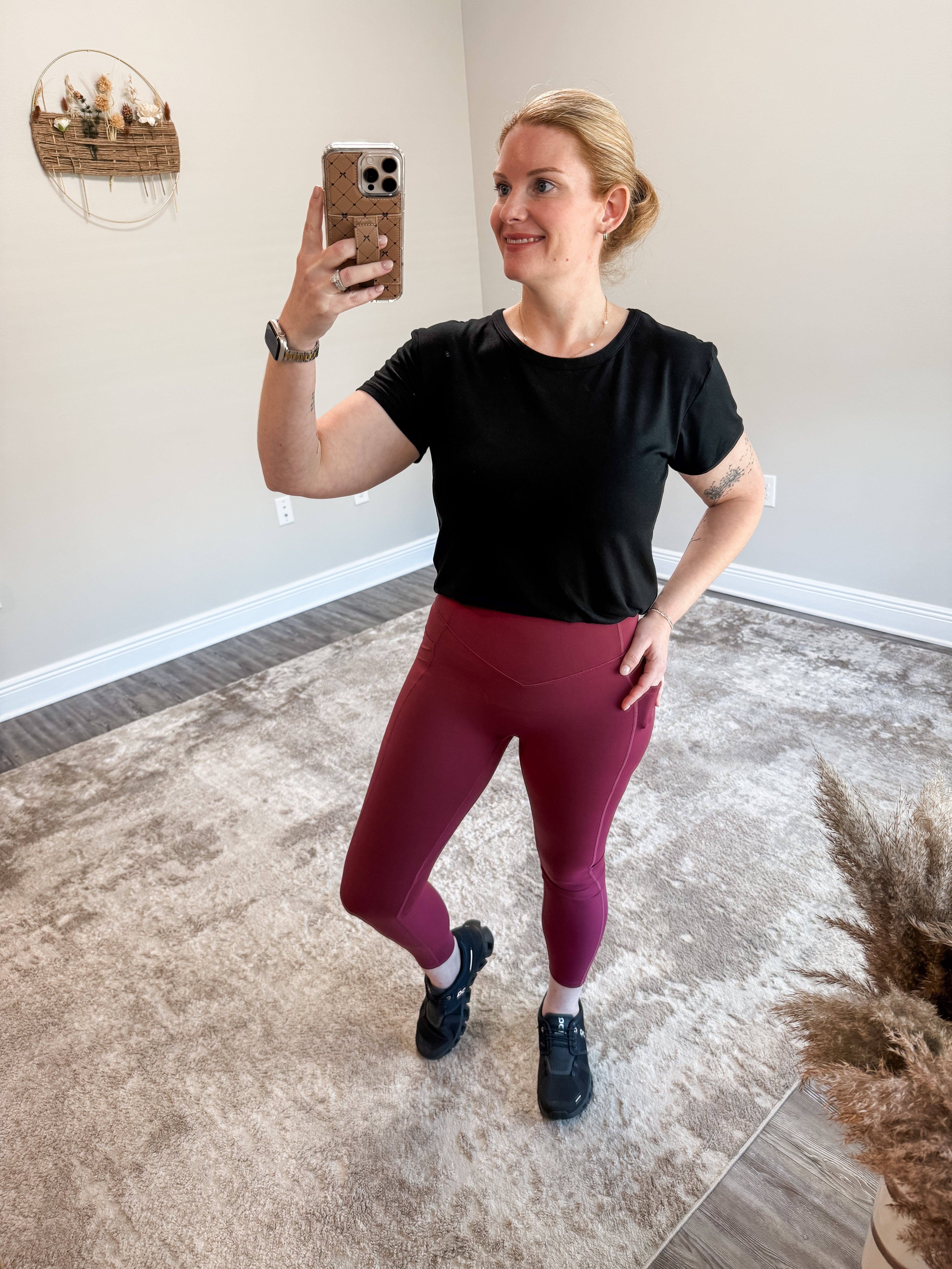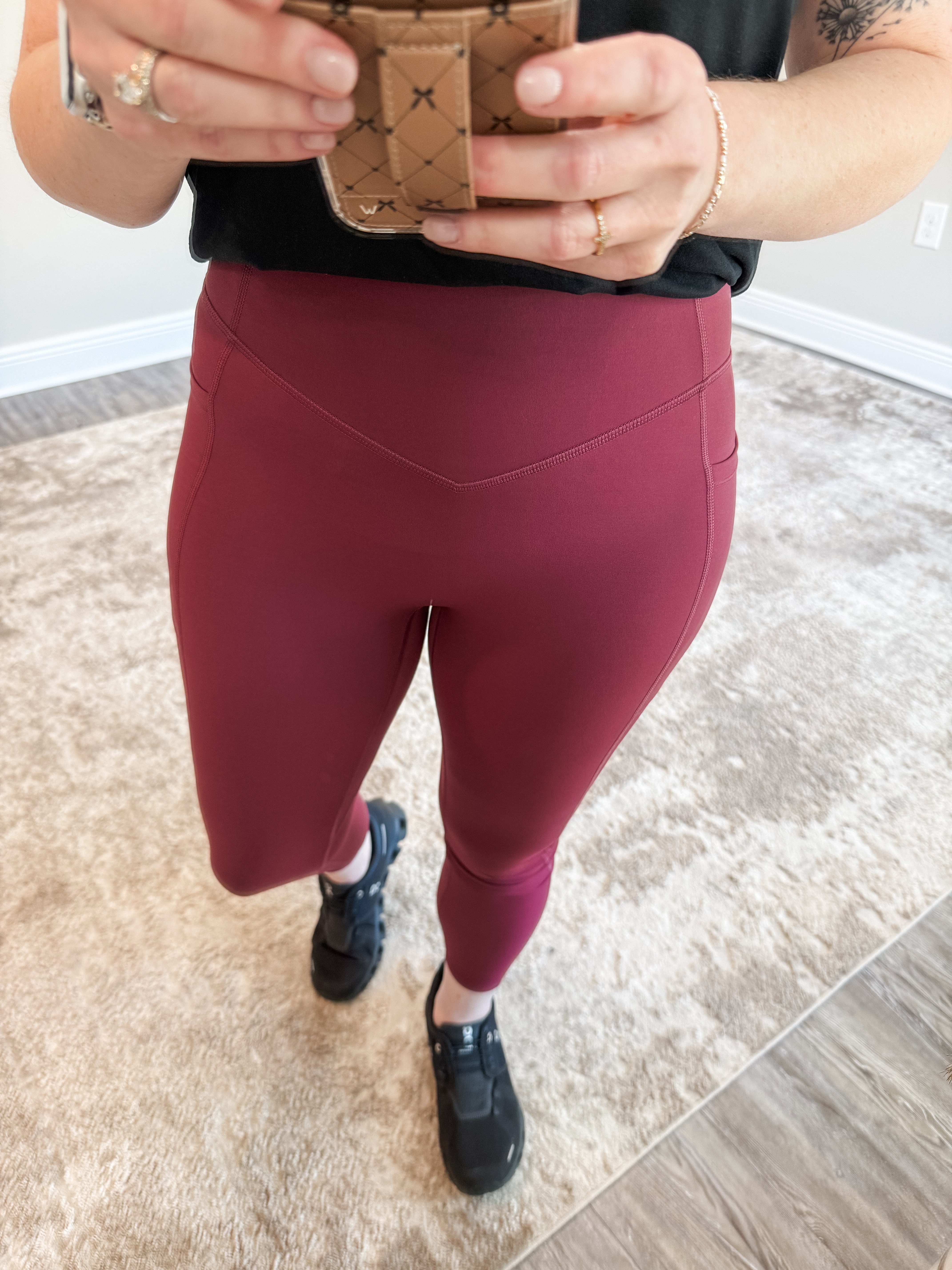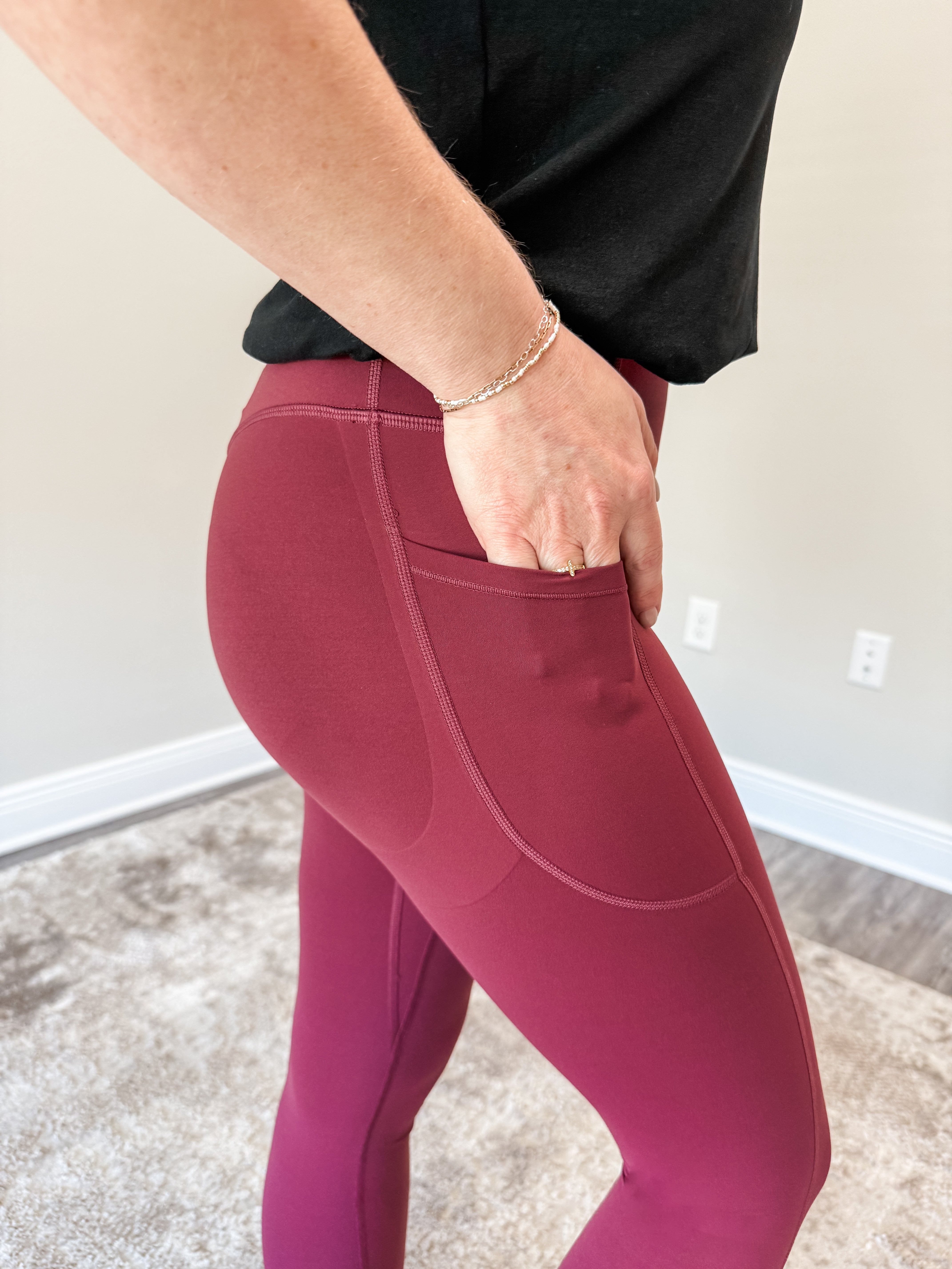 Halara SoCinched High Waisted Butt Lifting Tummy Control Side Pocket Shaping Training UltraSculpt Leggings (Wine)