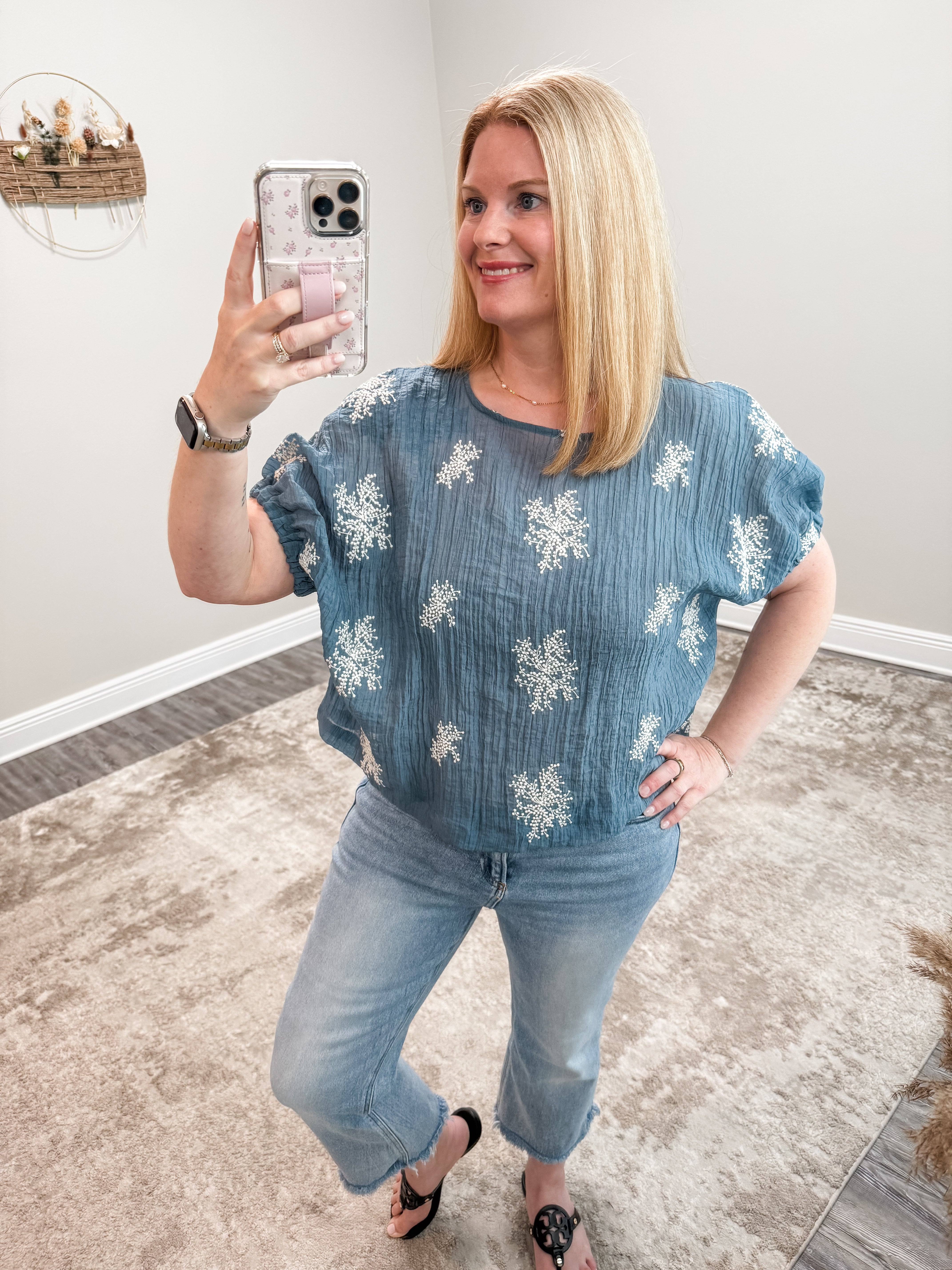 The Leah Top elevates your casual wardrobe with exquisite embroidery and thoughtful design. This breezy blouse combines a flattering rounded neckline with comfortable dolman sleeves, while elastic cuffs create a polished finish. The lightweight fabric and boxy silhouette work together to deliver both style and comfort that will keep you reaching for this versatile piece day after day.