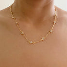 The Oh My Star Sparkling Necklace shines with a stunning star or heart design adorned with sparkling cubic zirconia. Crafted from 18k gold-plated brass, this 16" necklace with a 2" extender is perfect for layering or wearing solo to make a bold statement. Lead and nickel free, it offers both elegance and comfort, making it an essential accessory for any jewelry collection.