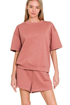 Experience ultimate comfort and style with our Scuba Short Sleeve and Dolphin Shorts Set! The relaxed fit and drawstring elastic waist shorts with side pockets provide convenience and ease. With an inseam of 3.5" for the shorts, you'll stun in both comfort and style.