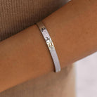 The ALCO Solstice Cuff Silver combines elegance and durability with its 18K gold-plated stainless steel design. Hypoallergenic and free from nickel and lead, it’s safe for sensitive skin. Featuring a water-resistant finish and a convenient cuff closure, this one-size-fits-all accessory offers both style and comfort for everyday wear.