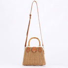 Straw Beach Bag with Bamboo Handle-Camel