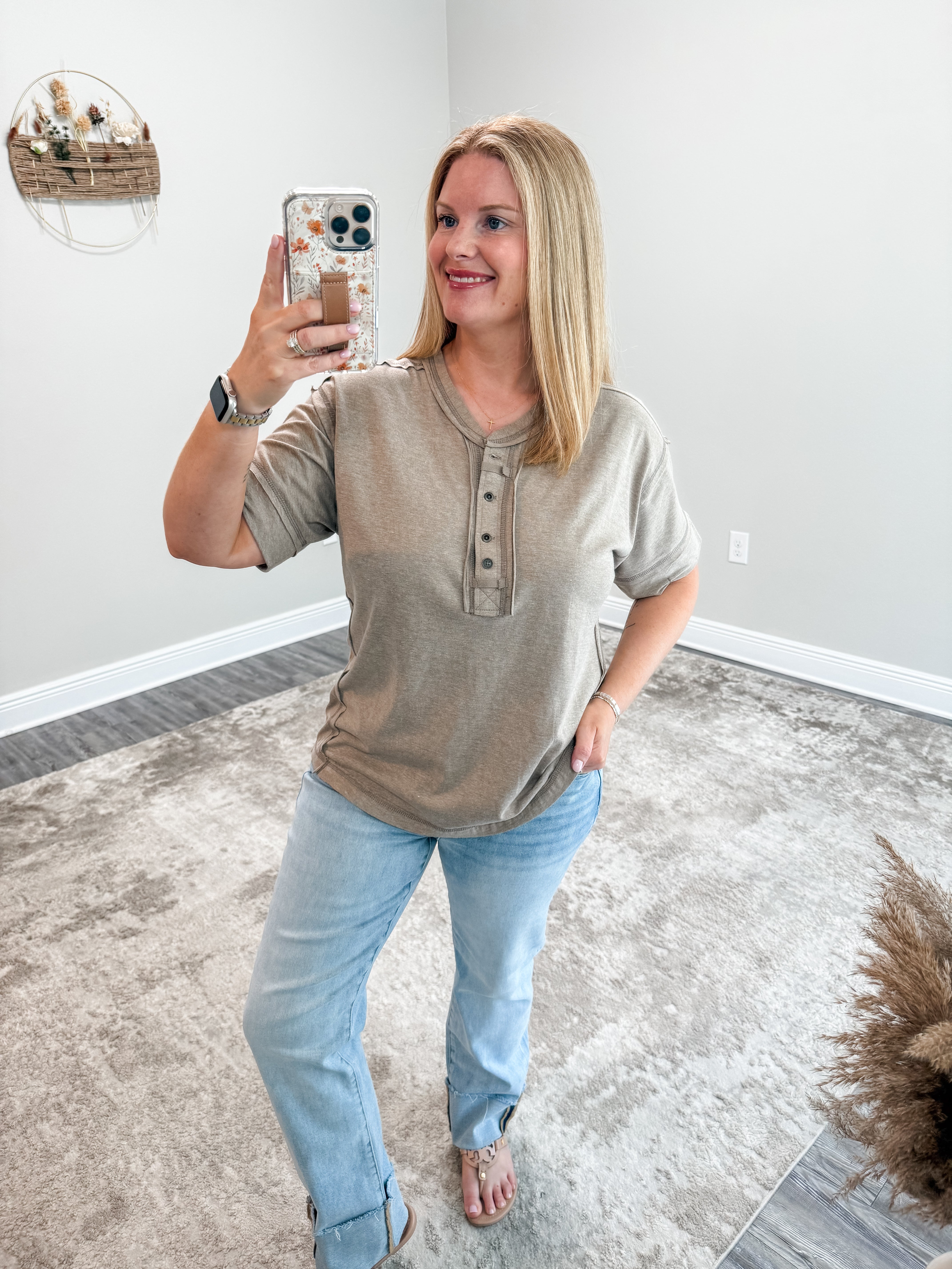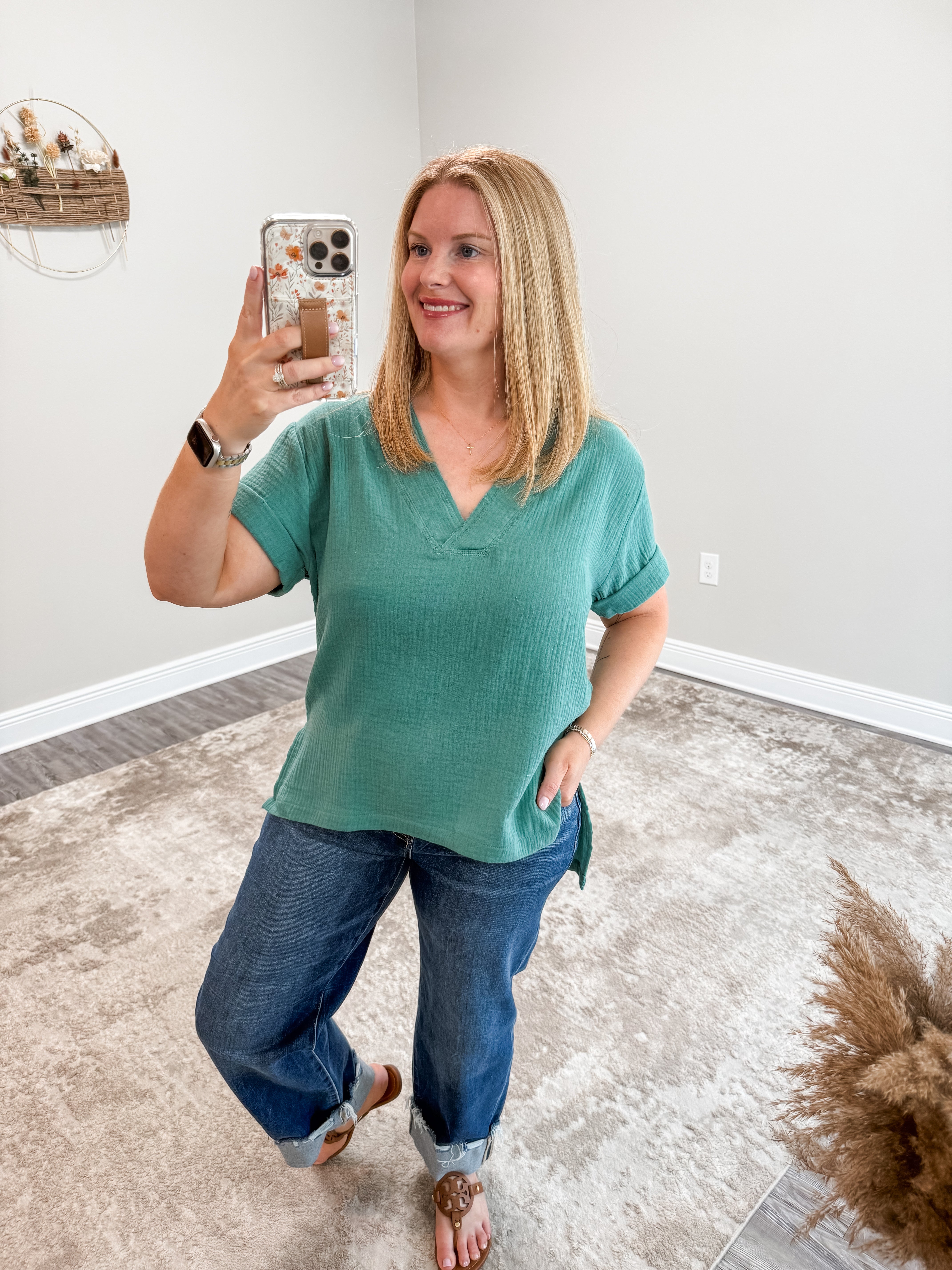 Risen High Rise Crop Boyfriend Cuffed Jeans (Light Washed)