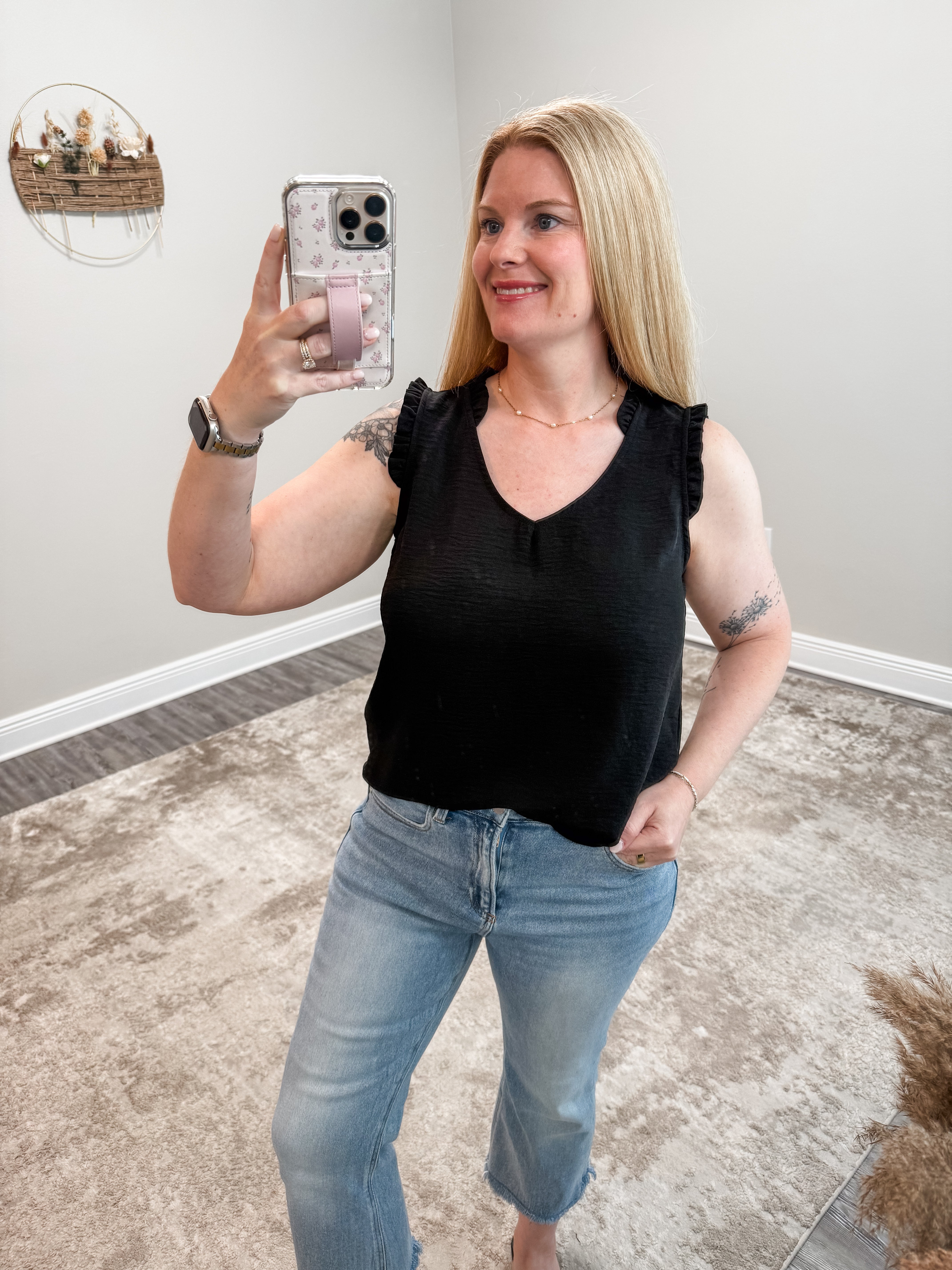 Halara Softlyzero™ Plush Padded V Neck Plain Tank Top (Black)