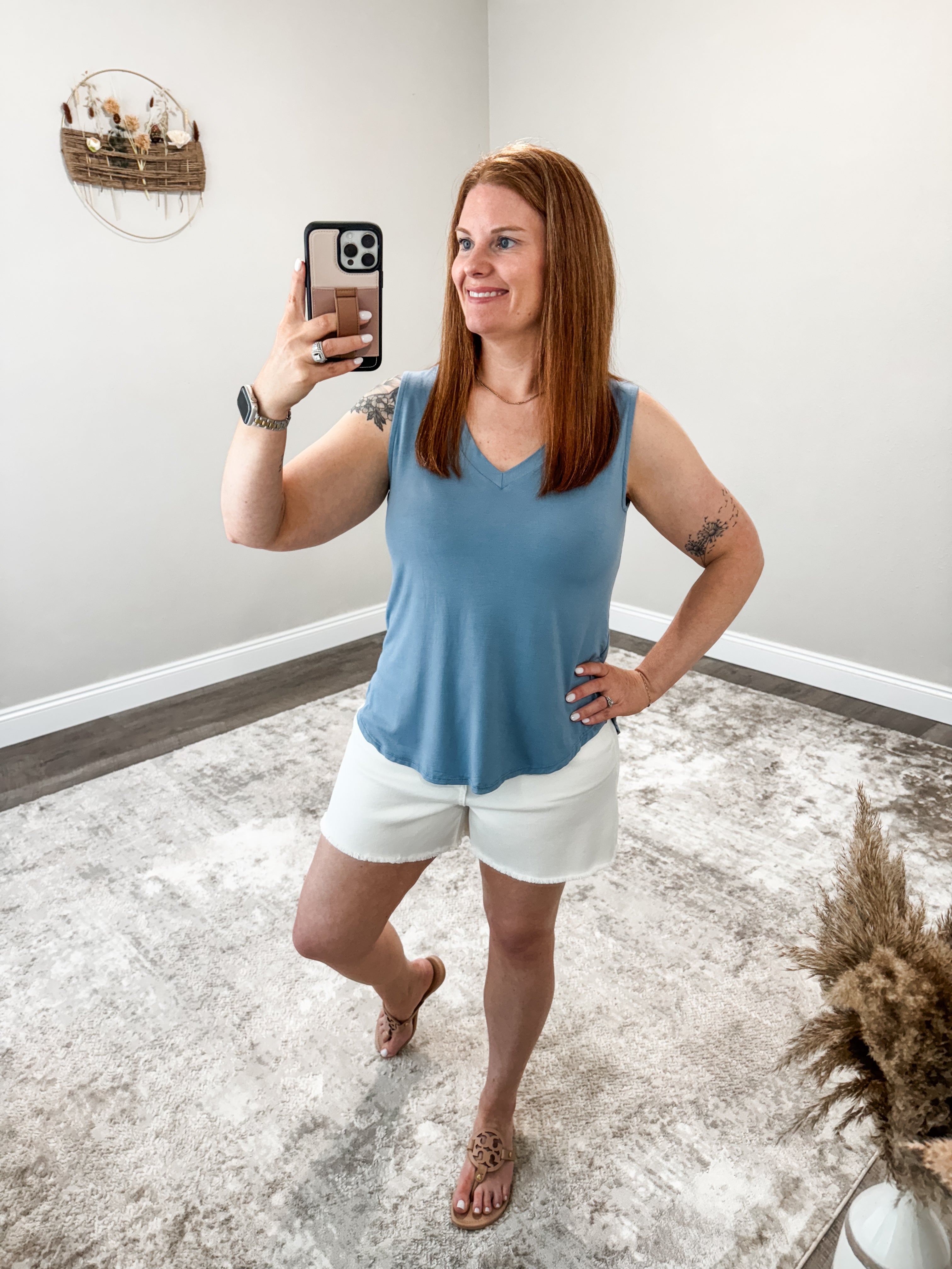 Expertly crafted from eco-friendly bamboo fabric, the Catrina V-Neck Top is a versatile addition to any wardrobe. Its lightweight and relaxed fit makes it perfect for any occasion. Experience the superior softness and comfort of bamboo with this must-have sleeveless top.
