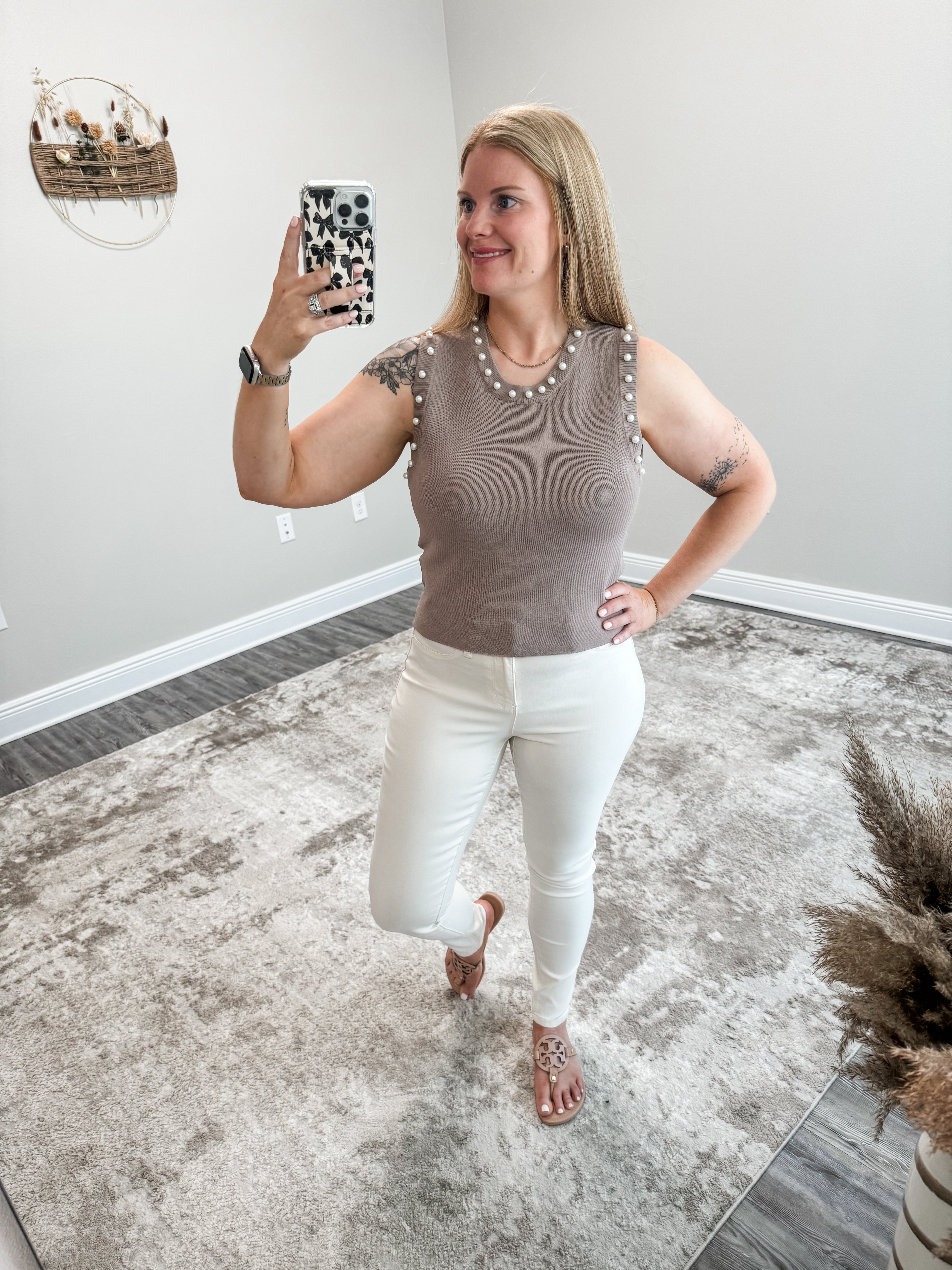 Indulge in elegance with the Marlie Pearl Top. This solid round neck sleeveless cropped top features delicate pearl detailing that adds a touch of sophistication to any outfit. Made from a lightweight, non-sheer knit material, this top is both stylish and comfortable. Elevate your wardrobe with this must-have piece!
