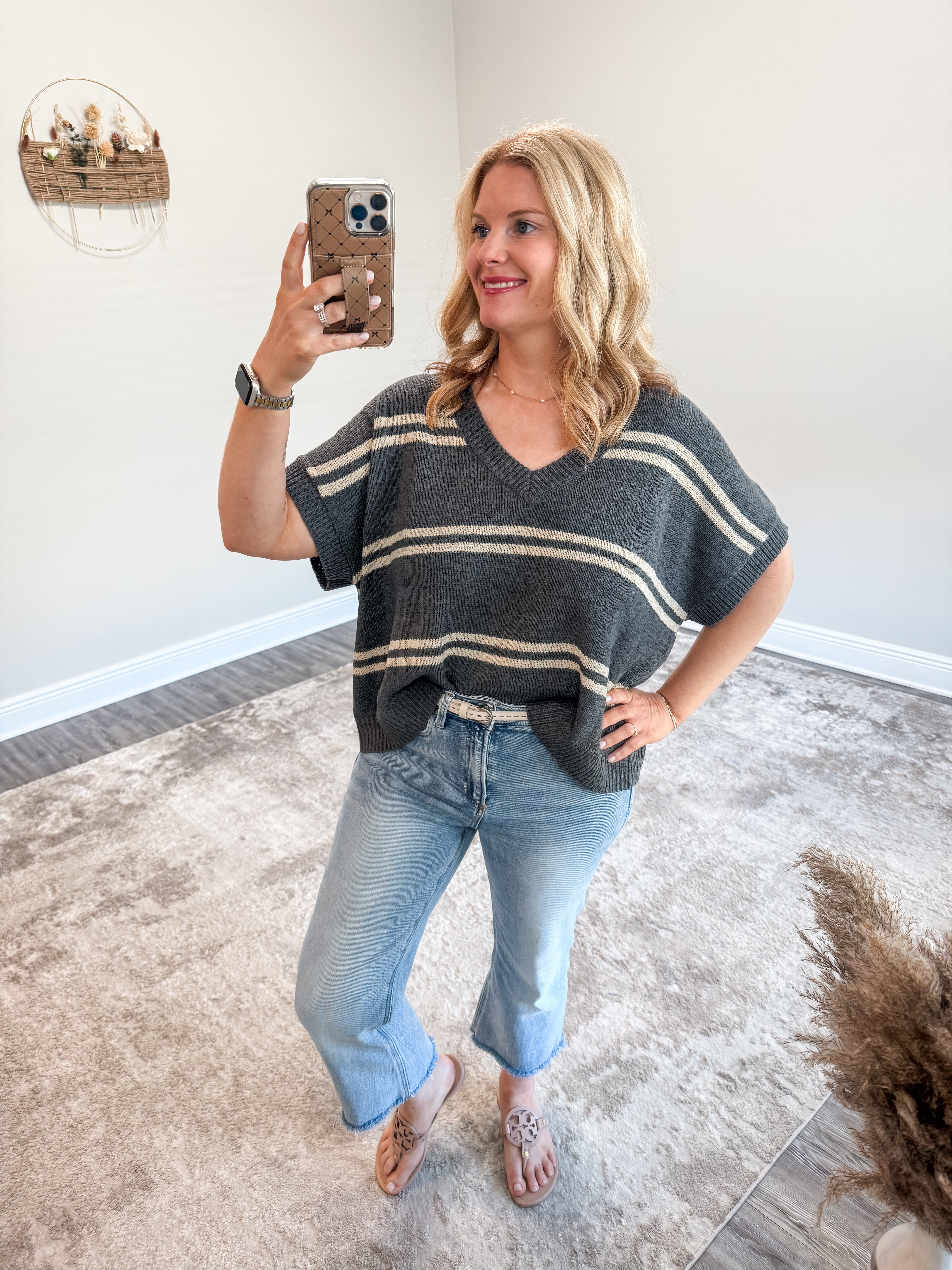 Introducing the Sophia Sweater Top - a must-have addition to your wardrobe! This cozy and stylish V-neck top features a unique textured stripe design that adds a touch of sophistication to any outfit. Stay on-trend with this versatile lightweight sweater top. This top is oversized.