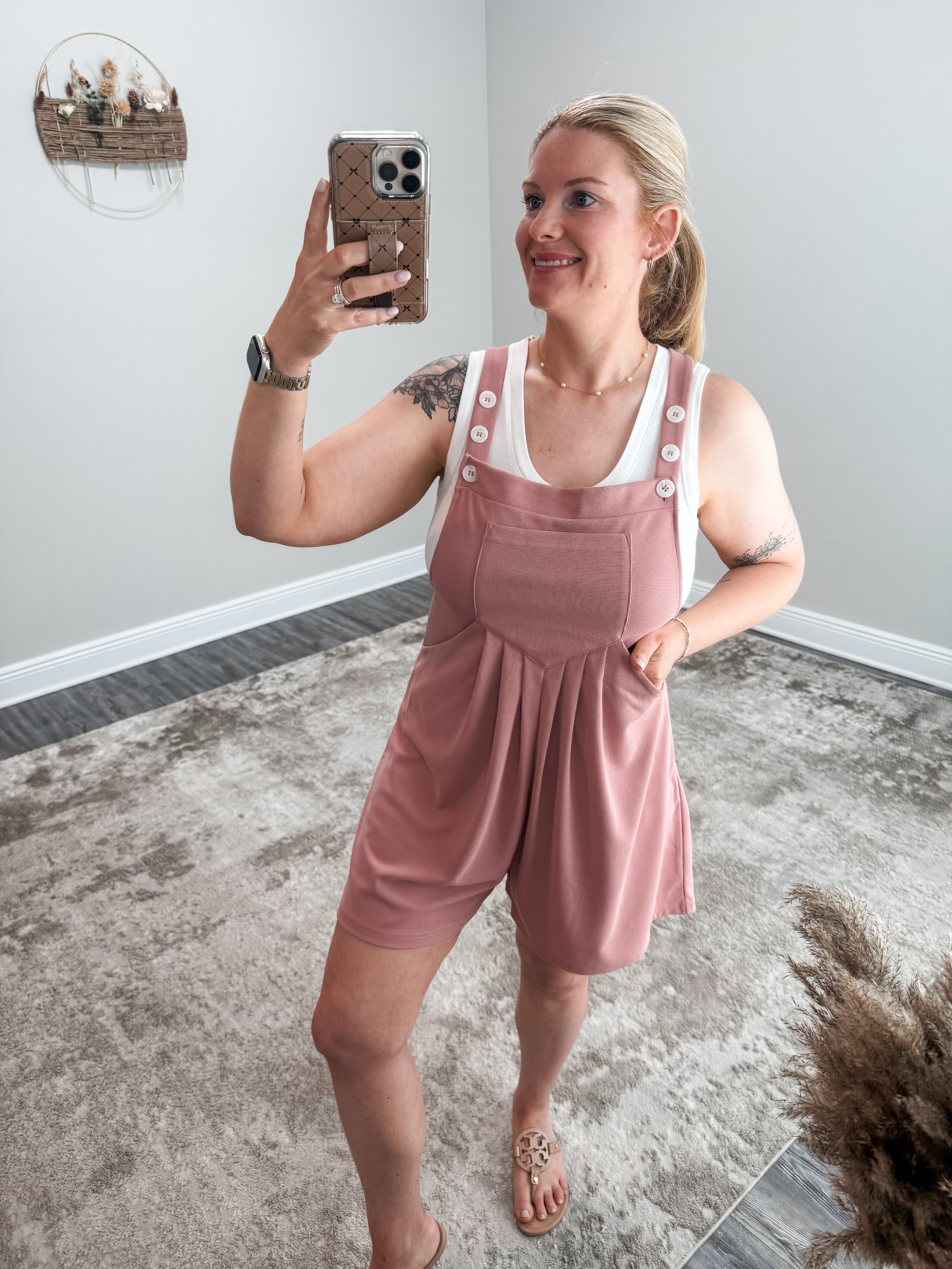 Experience comfort and style in these Halara Waffle Casual Short Overalls! Adjustable straps allow for a perfect fit, while cute button placement adds a touch of personality. Multiple pockets provide convenient storage. The waffle fabric and plicated tailoring add texture and a 2-way stretch fabric ensures freedom of movement.